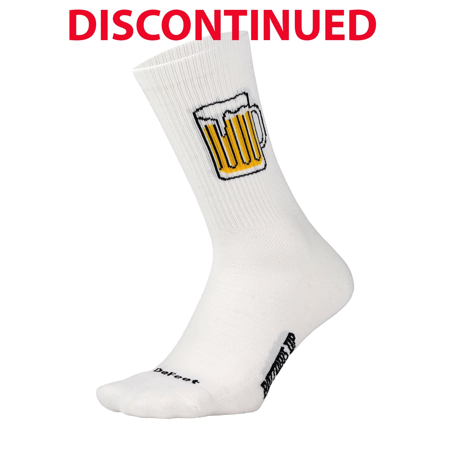 The Levitator Trail 6" Bottoms Up crew sock in white with a frothy beer mug on the side of the cuff, perfect for your Oktoberfest celebrations!