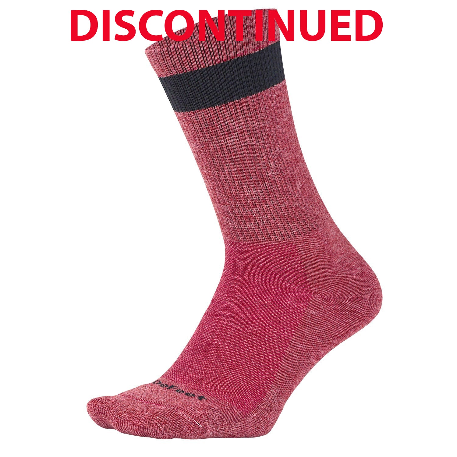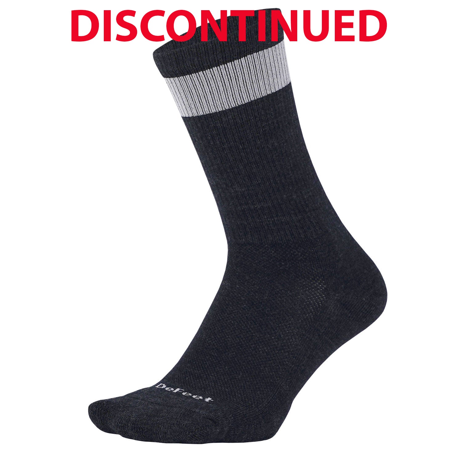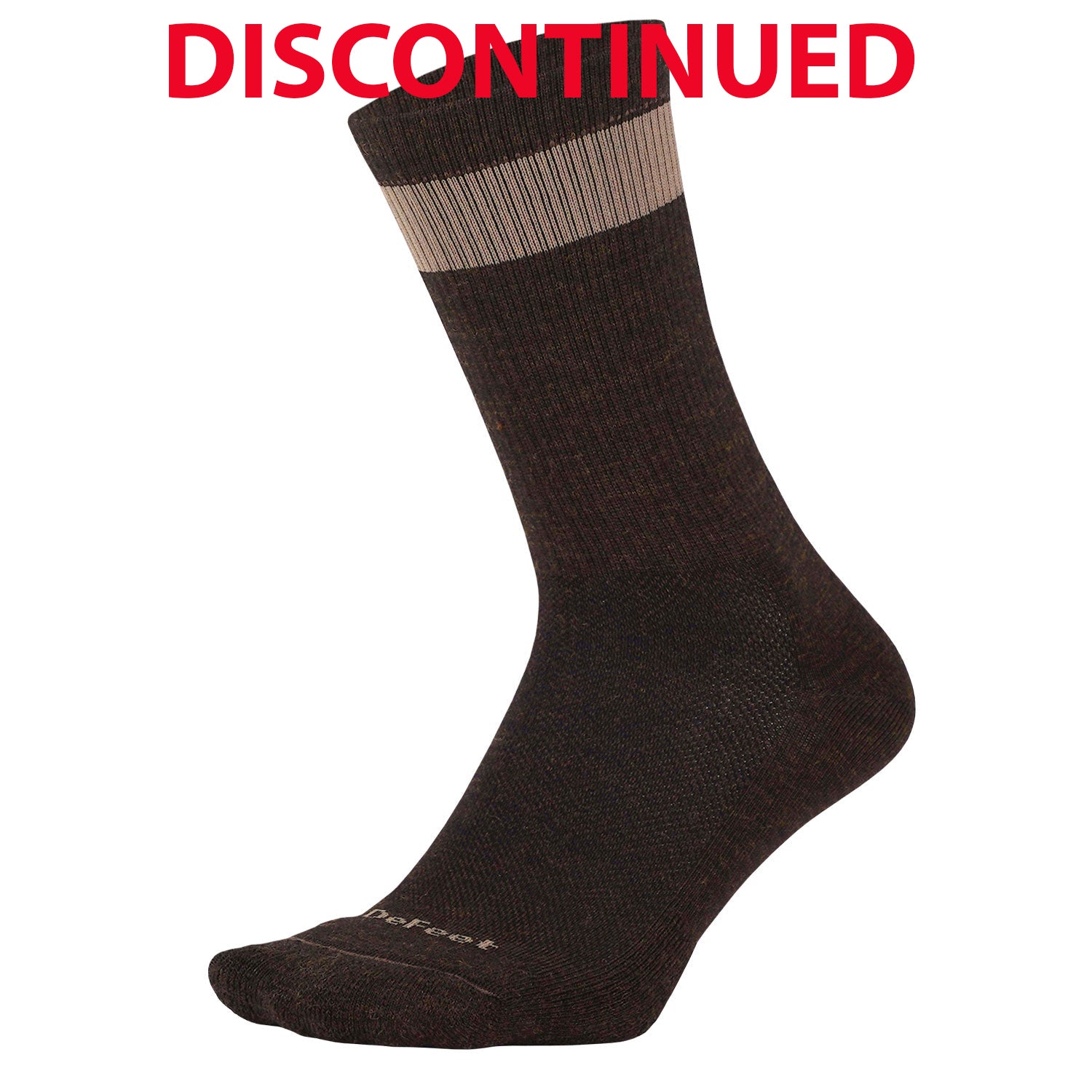 The Levitator Trail 6" Wool Stripe crew sock in classic earthy shades with a wide tonal stripe at the top of the supportive ribbed cuff.